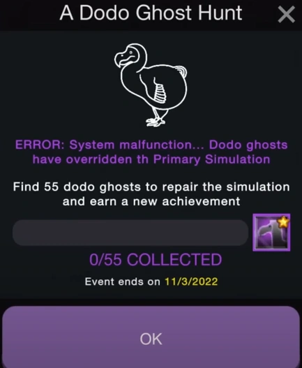 Знайшовши всіх Додо в симуляції, ви отримаєте секретне досягнення під назвою «Найстрашніше досягнення».