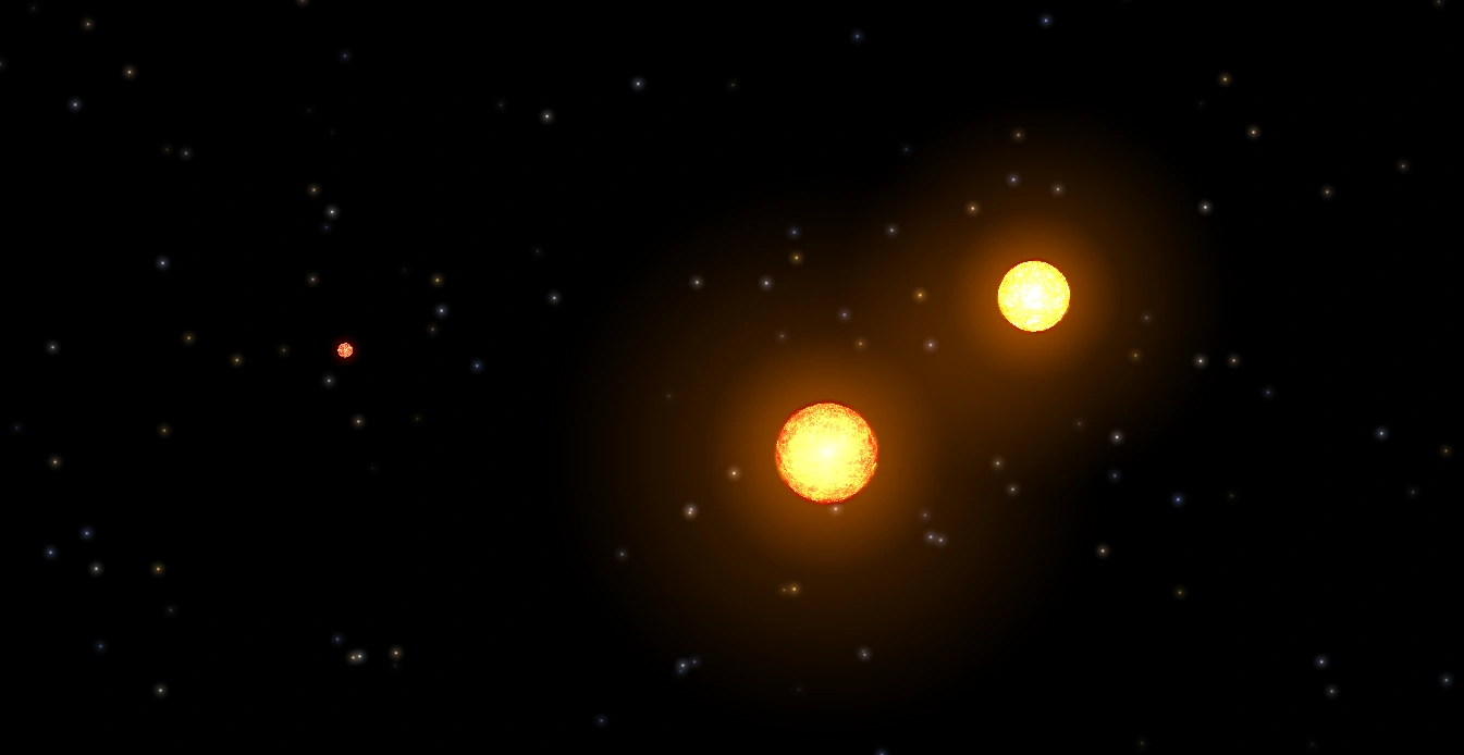 This trinary star system is located in the Centaurus constellation, and is the third brightest stellar object in the night sky. The Alpha Centauri star system is made up of three stars (trinary star system), Alpha Centauri A (Rigil Kentaurus), Alpha Centauri B (Toliman), and Alpha Centauri C (Proxima Centauri). Of these three, all are present in the game. These are a main-sequence star of spectral type G2V (Rigil Kentaurus), main-sequence star of spectral type K1V (Toliman), and a small main-sequence red dwarf star of spectral type M5.5Ve (Proxima Centauri).