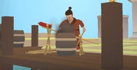 Aqueduct | Towns grow into cities, creating a thirst for accessible water. Concrete bridges and clay or metal pipes are engineered to traverse ravines and mountains. By gravity alone, aqueducts transport water for miles. A Roman system will stay in use for 2,000 years. | Iron Age | Roman-looking woman uses a groma (surveying tool) on an aqueduct | ||