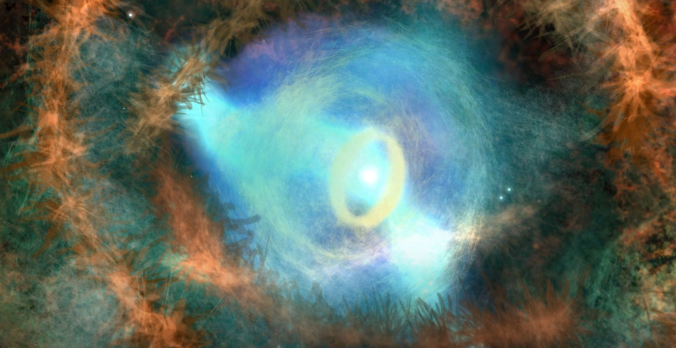 An image of the Crab Pulsar, which combines optical data from Hubble and X-ray images from Chandra.