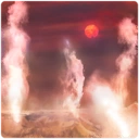 "Enaiposha is a warm super-Earth with hazy skies lit by the rosy glow of a red dwarf. Three times bigger and 8 times more massive than Earth, the planet’s density means a chunk of it must be lighter than rock but heavier than gas. Very likely, Enaiposha is a water world."