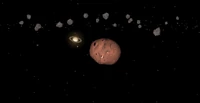 "The larger of Mars' two moons, Phobos is named for the Greek god of fear and panic. It has a very close orbit to Mars, and rises and sets twice in one Martian day. In the future, it may be torn apart by Mars' gravity."