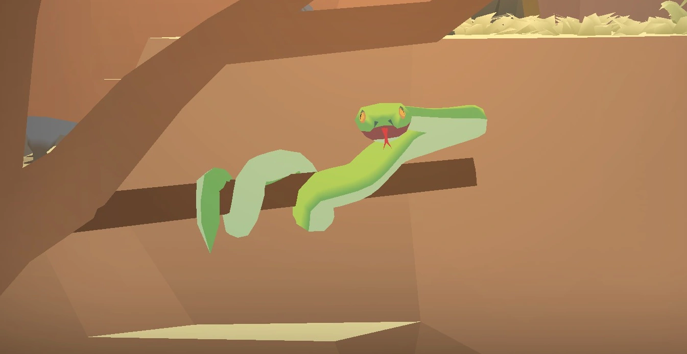 The viper has the appearance of a green pit viper (Genus Trimeresurus). A viper lives in the Savanna section of the Land garden, and coils on a branch of tree directly above a large group of Tetrapods. Another one lives in the Jungle section, coiled over a vine close to a large group of Apes. The viper makes an animation of it coiling around a branch and rearing back.