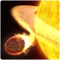 "The parent star of WASP-12b is a yellow dwarf, like the Sun, but it is ripping its child to pieces. The planet orbits so closely that powerful tidal forces from the star’s gravity warp it into an odd egglike shape called a Roche lobe."